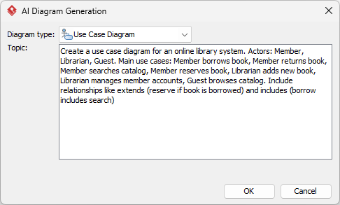 - Select Tools > AI Diagram Generate from the main menu to open the AI Diagram Generation dialog box.